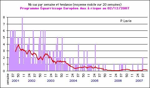 En 2006 et 2007 la barre des 10 cas par million de bovins testés est franchie...
