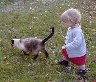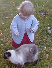 pour lui mettre des feuilles sur son pelage si doux ! ... je crois qu'elle n'aime pas bien ça !! |