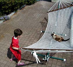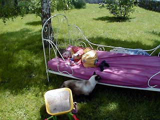 J'adore balancer le chat dans le hamac... et me prélasser dans le lit de jardin...